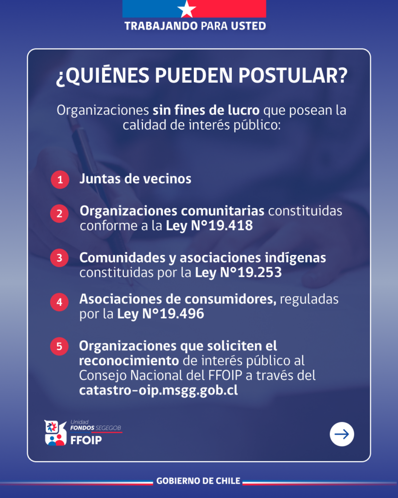 - dirigentes sociales interesados en postular al FFOIP 2026